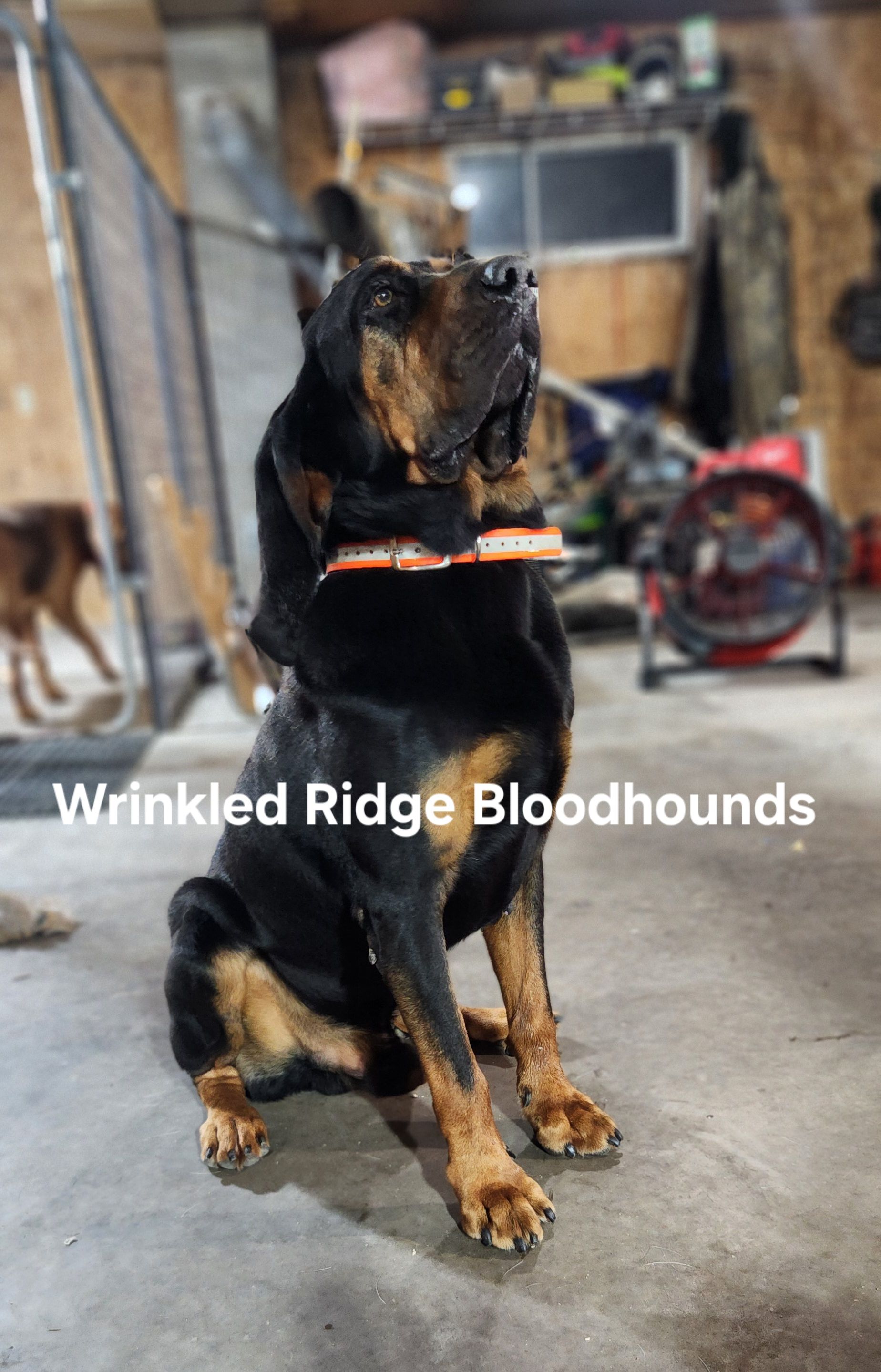 Folsom is a senior tracking dog with legendary bloodlines, carrying forward a heritage of some of the finest working bloodhounds in history. His lineage includes top-performing hounds known for their record-breaking ears, certified search and rescue work, and remarkable tracking achievements across the country. Folsom has lived up to that legacy in every way, proving himself time and again in the field with his relentless drive, unmatched scenting ability, and steady determination. Beyond his own accomplishments, his greatest gift is the legacy he passes down to the next generation—instilling strength, intelligence, and heart into every pup connected to his line. Folsom is not only a veteran of the trail but also a cornerstone of our breeding program, where his legendary bloodlines continue to shape the future of Wrinkled Ridge Bloodhounds.
